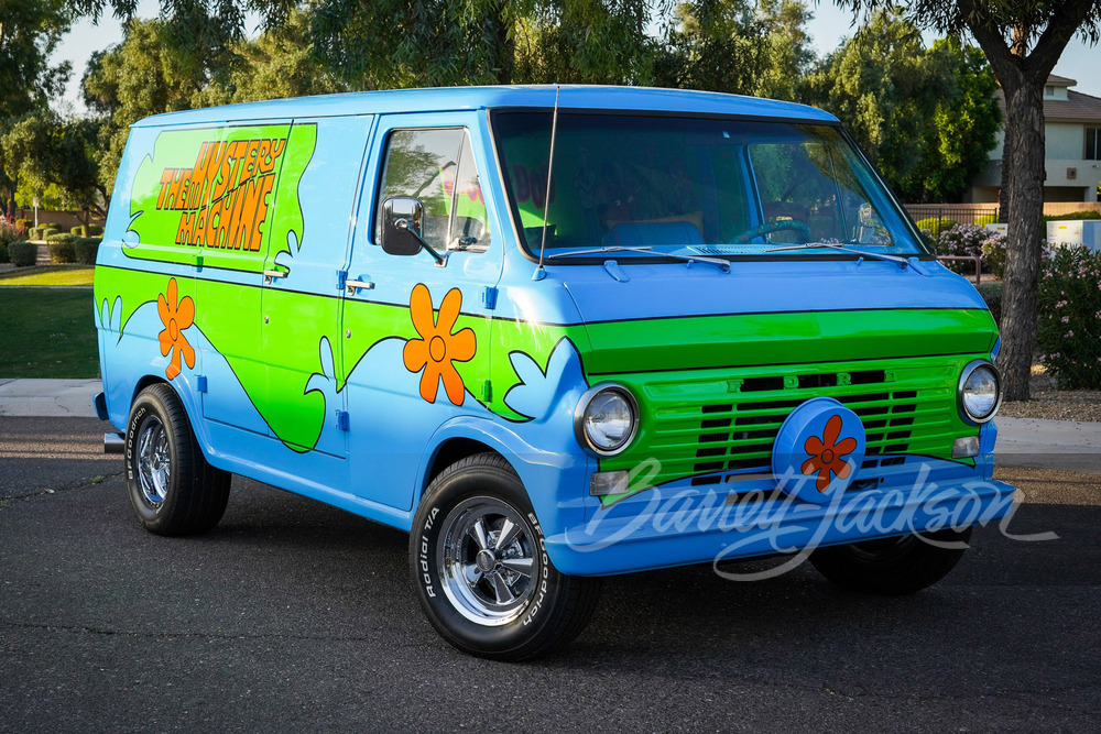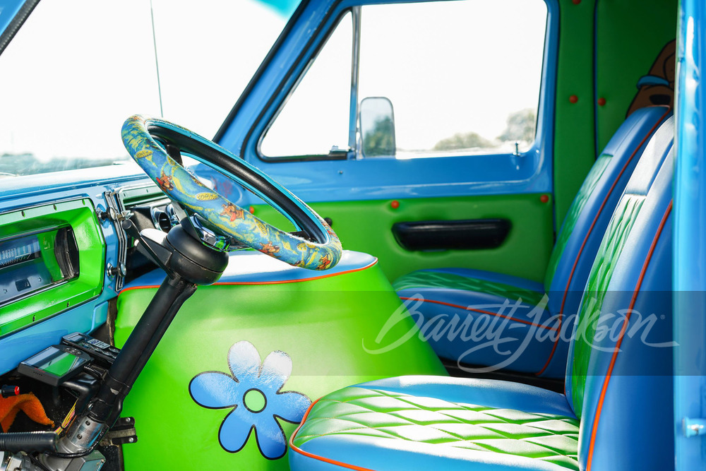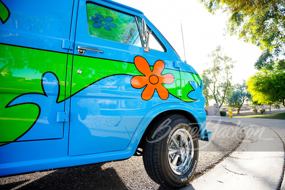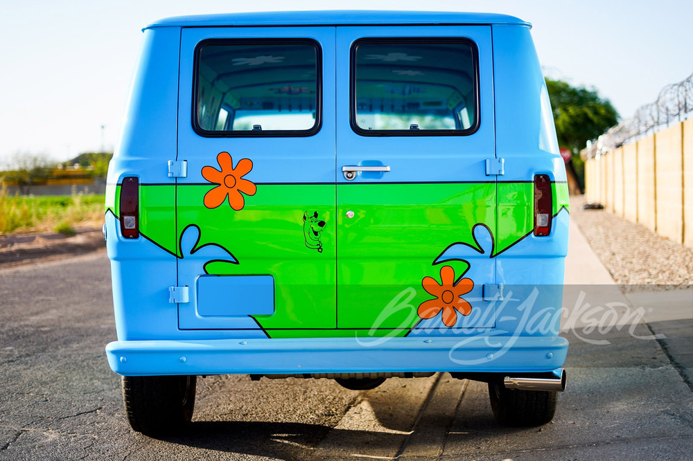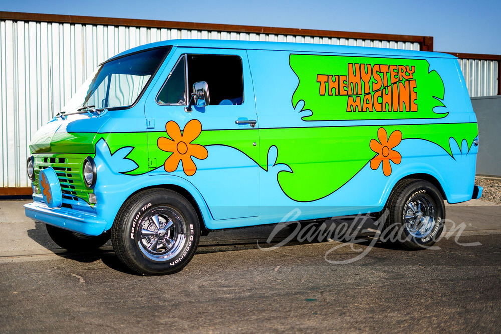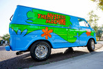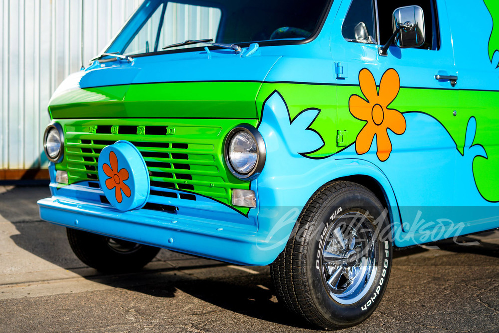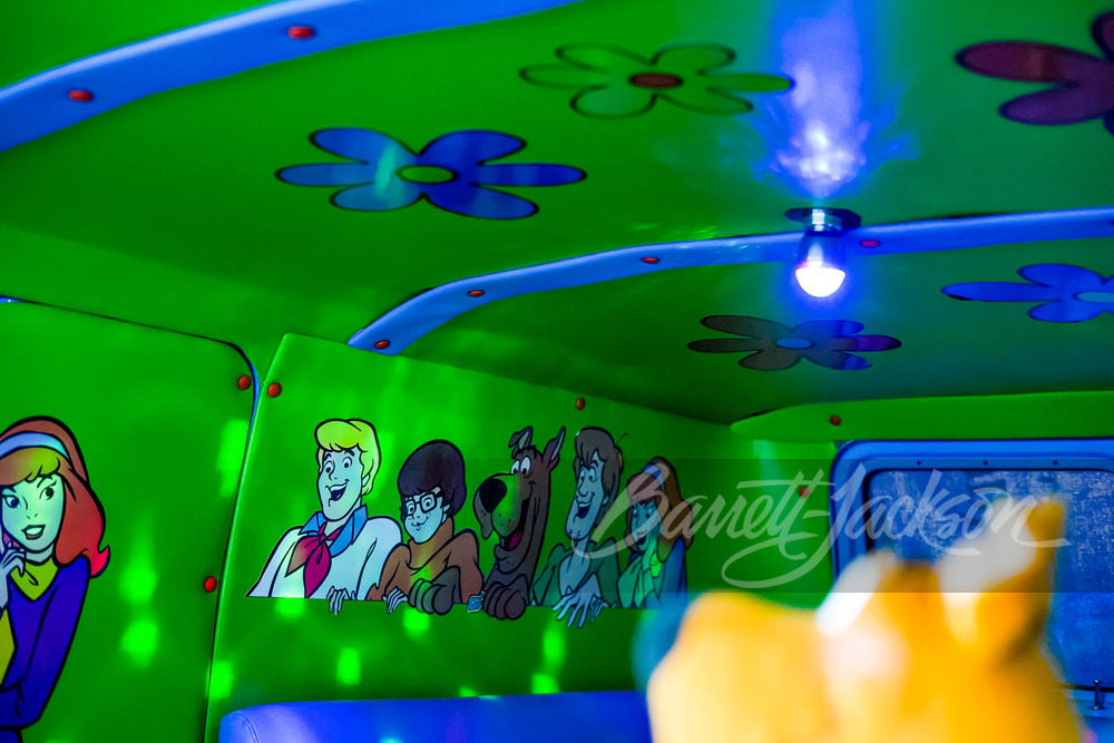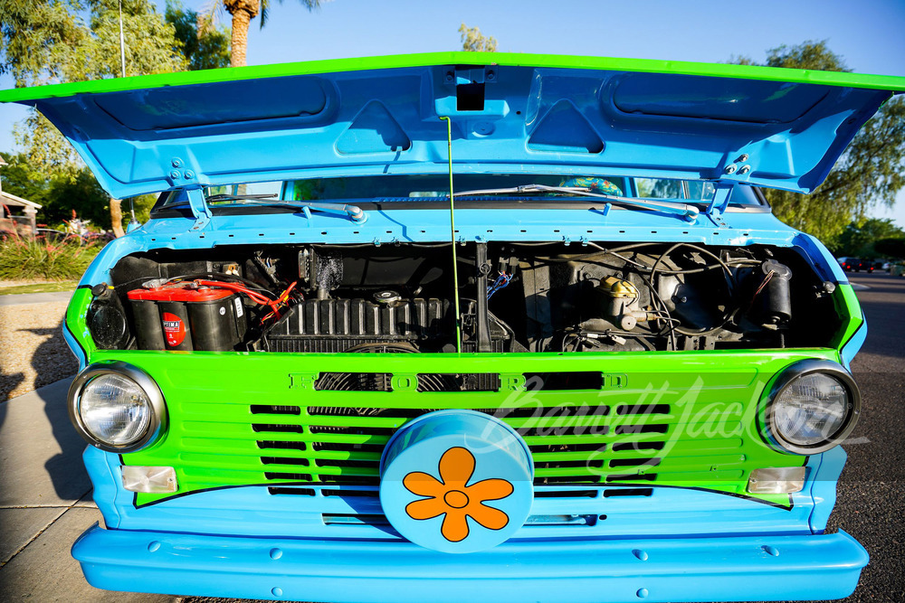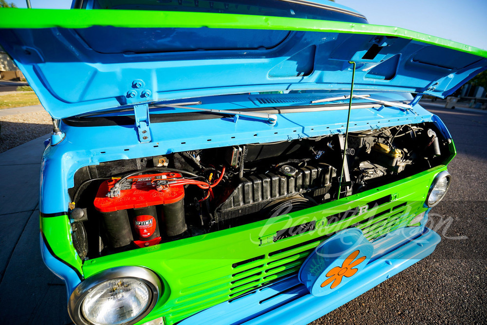 Lot #418 - This 1968 Ford Econoline "Mystery Machine" van re-creation is powered by a 302ci V8 engine mated to an automatic transmission and is finished in the same movie color scheme with blue, lime green and orange. It is equipped with a "ghost finder" instrumental panel and multi-colored strobe lights. This van not only looks great on the inside and out but has been mechanically updated with new fuel injection, front and rear air conditioning, electric power steering and much more. This van has never been smoked in and has been garage-kept. It is an Arizona vehicle with a steel body and good glass.
