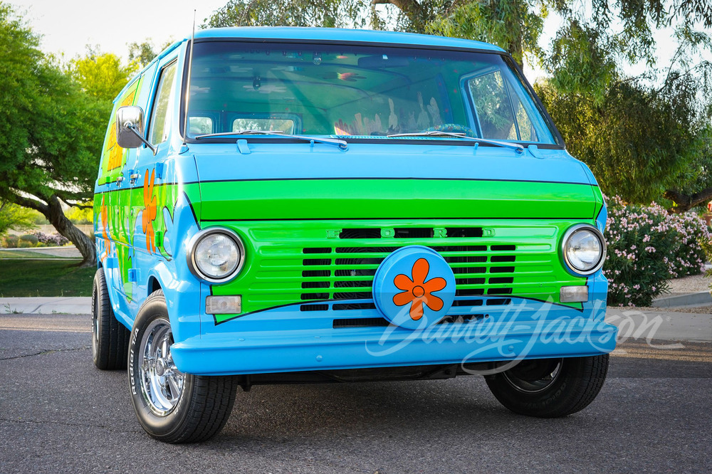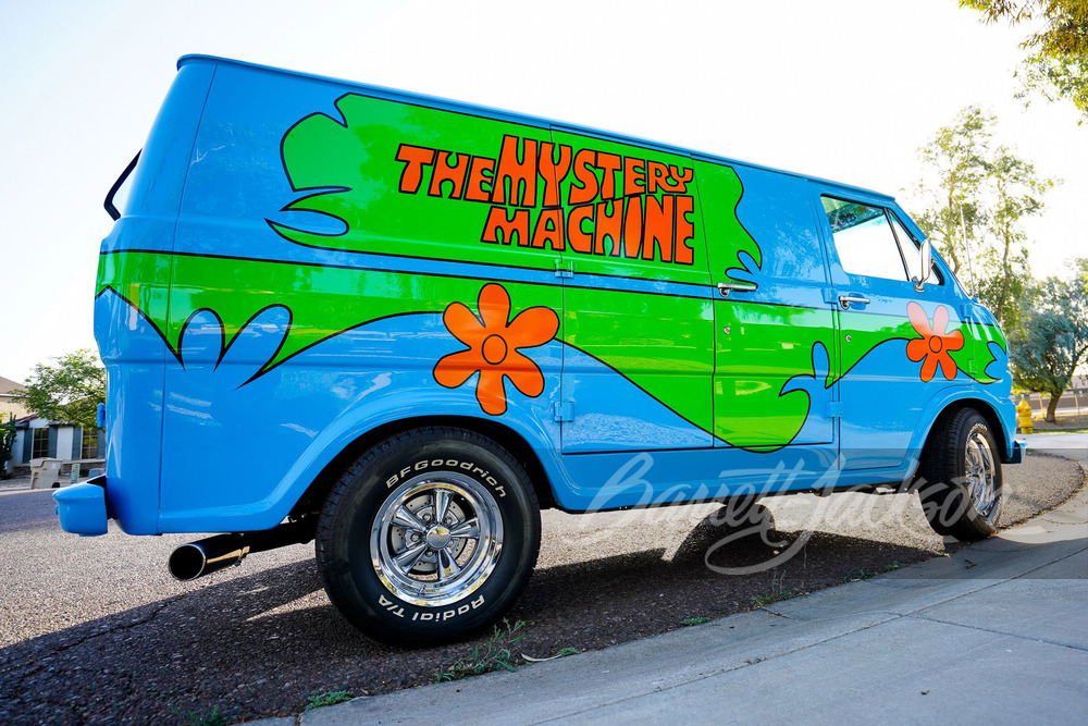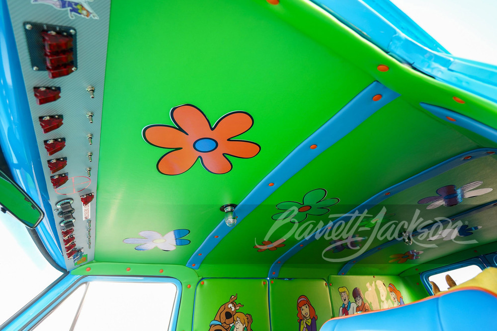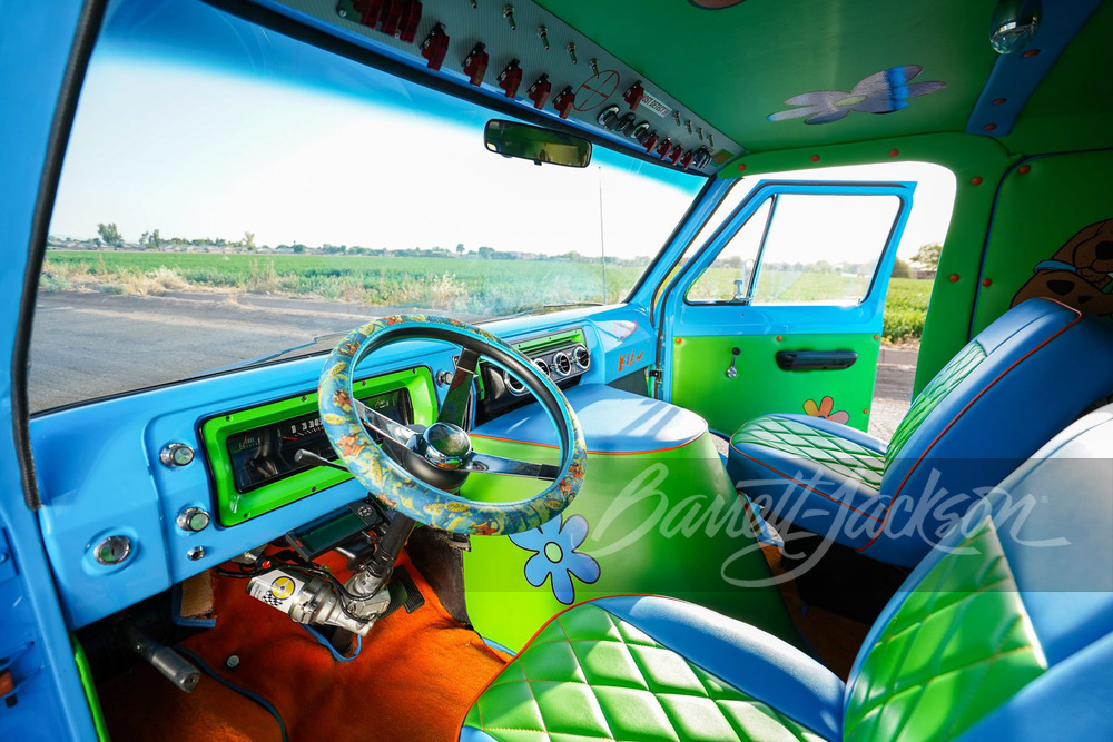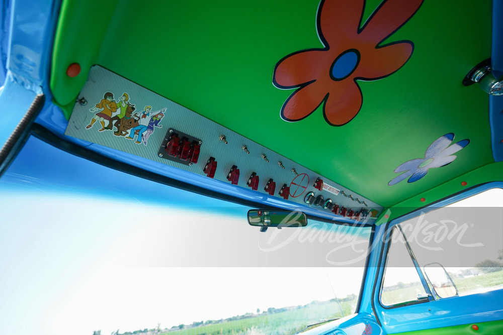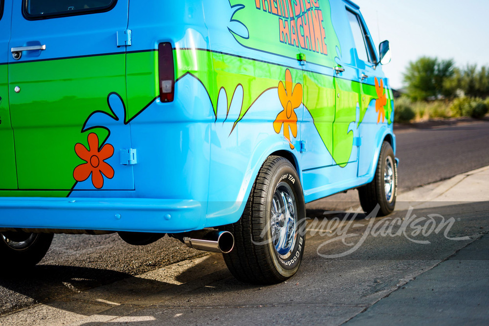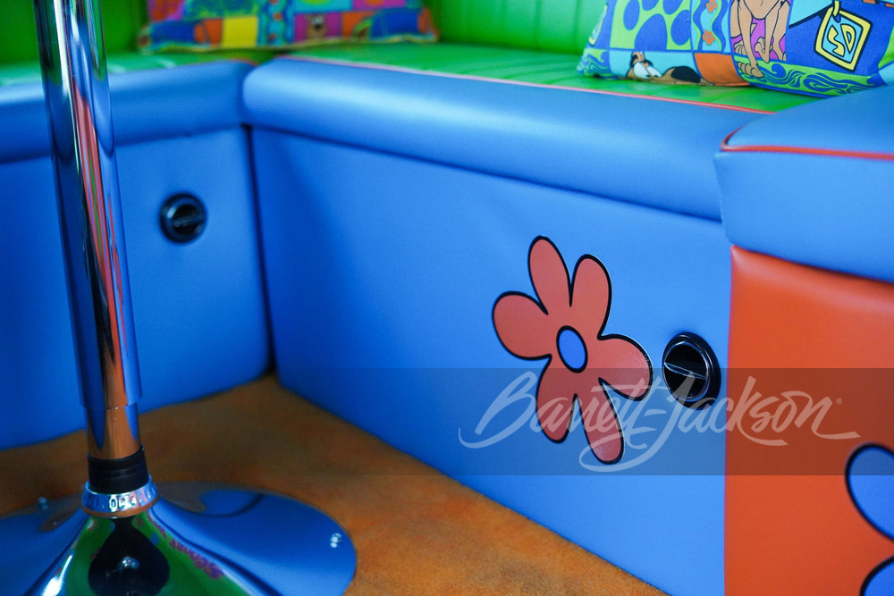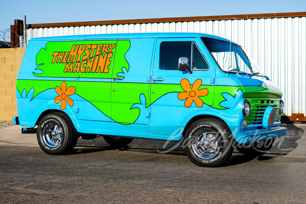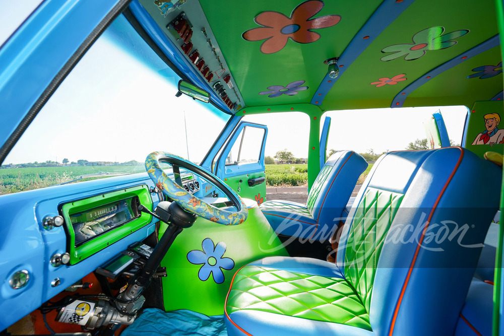 Lot #418 - This 1968 Ford Econoline "Mystery Machine" van re-creation is powered by a 302ci V8 engine mated to an automatic transmission and is finished in the same movie color scheme with blue, lime green and orange. It is equipped with a "ghost finder" instrumental panel and multi-colored strobe lights. This van not only looks great on the inside and out but has been mechanically updated with new fuel injection, front and rear air conditioning, electric power steering and much more. This van has never been smoked in and has been garage-kept. It is an Arizona vehicle with a steel body and good glass.