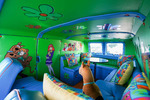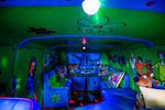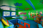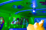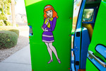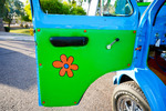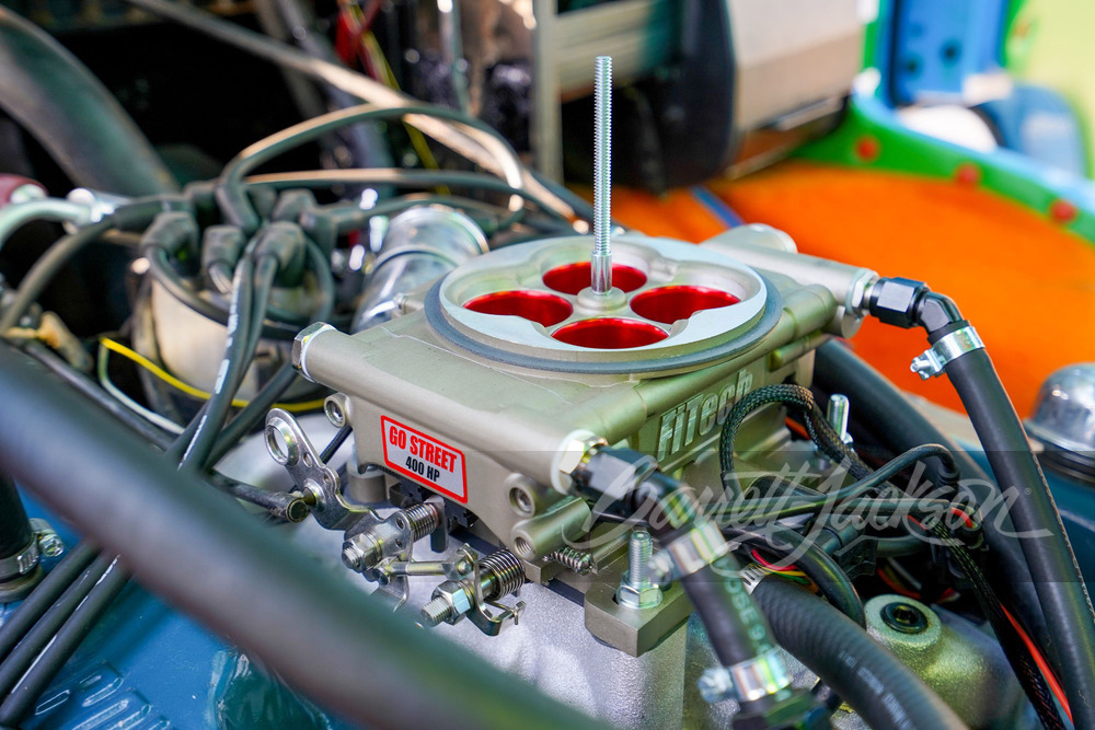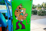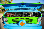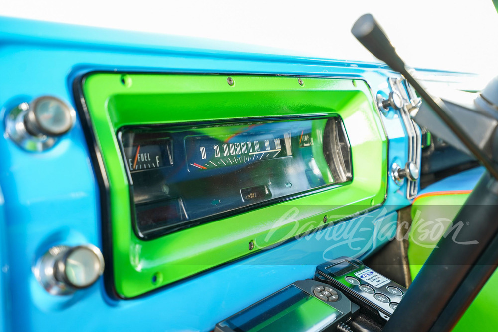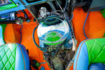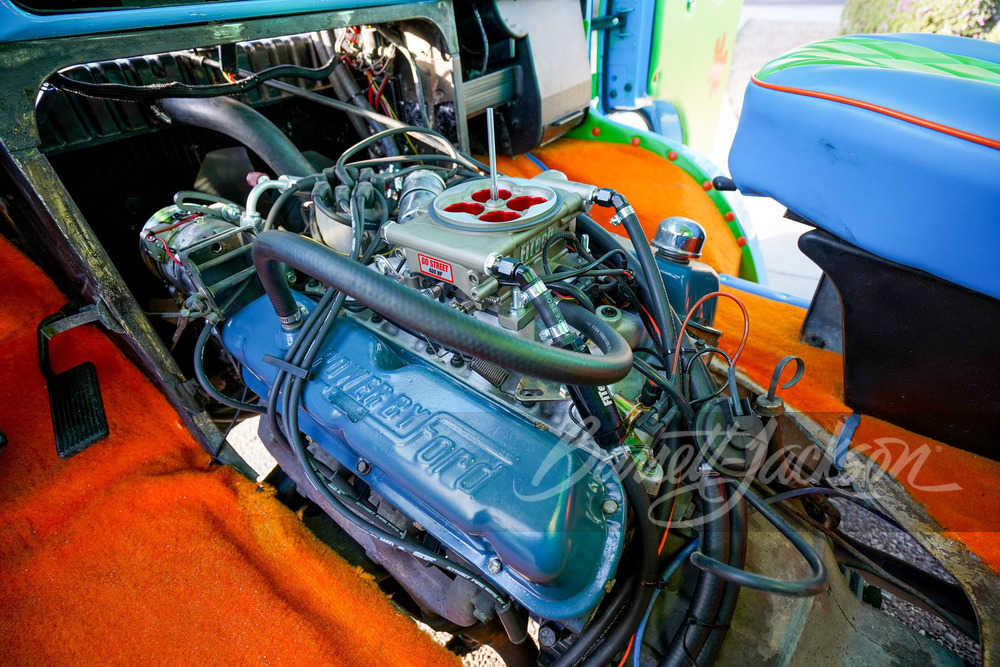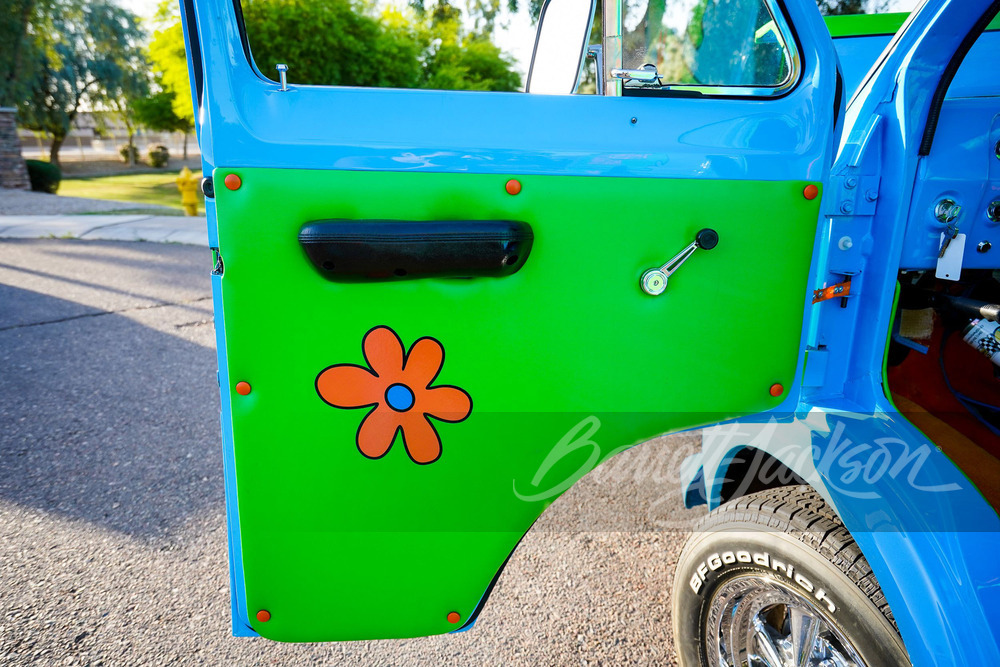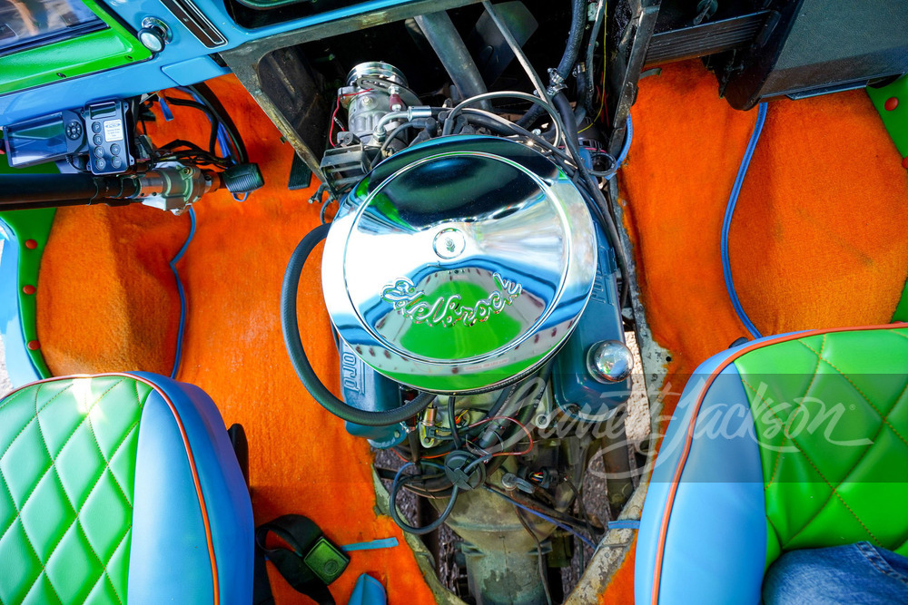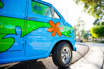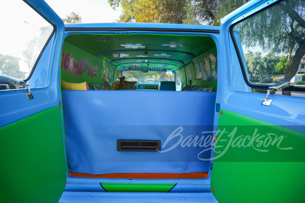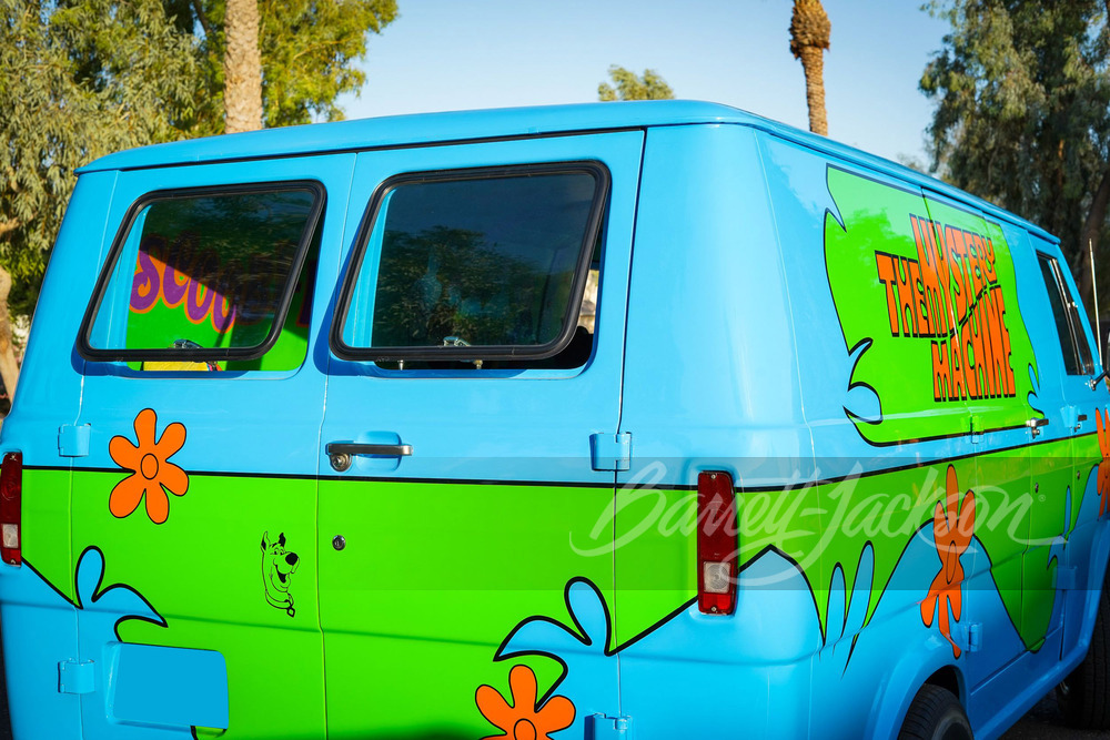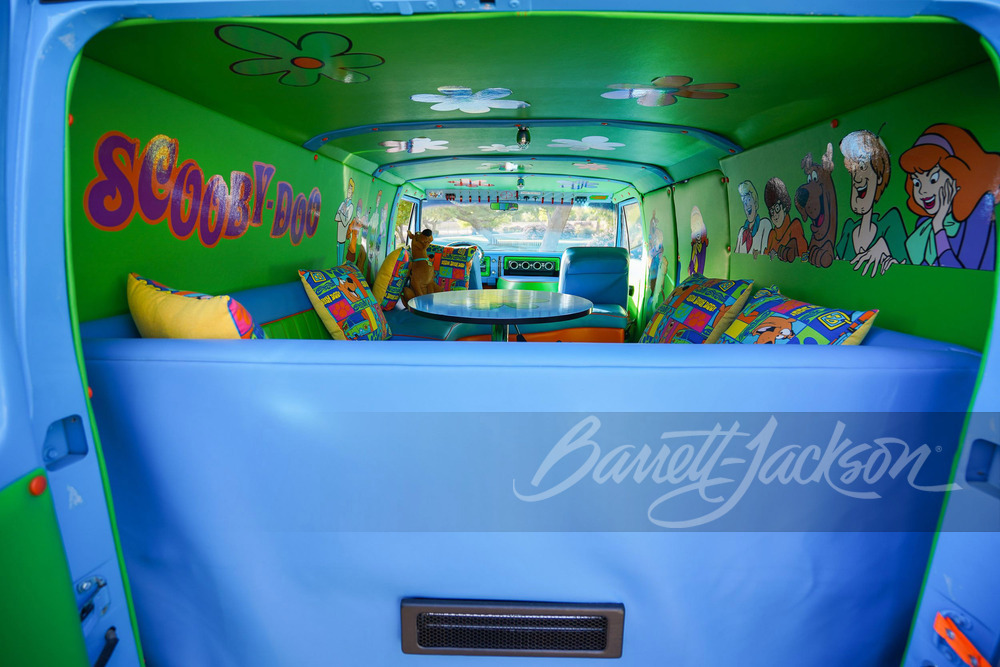 Lot #418 - This 1968 Ford Econoline "Mystery Machine" van re-creation is powered by a 302ci V8 engine mated to an automatic transmission and is finished in the same movie color scheme with blue, lime green and orange. It is equipped with a "ghost finder" instrumental panel and multi-colored strobe lights. This van not only looks great on the inside and out but has been mechanically updated with new fuel injection, front and rear air conditioning, electric power steering and much more. This van has never been smoked in and has been garage-kept. It is an Arizona vehicle with a steel body and good glass.